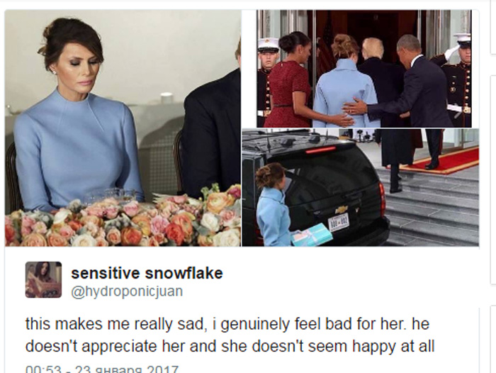 В Twitter набират популярност съобщения и снимки с хаштаг #SadMelania и #FreeMelania.