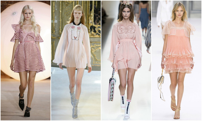 Къси рокли с нежни, пастелни нюанси и свободен силует с висока талия, бяха за кратко на мода. Тази година, малко наивни мини-рокли, изработени от коприна и тюл-като дрехи на кукла, ще да се носят с ботуши и груби боти в стила на мъжете.