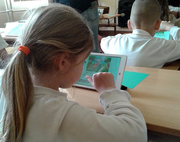 Първокласници учат английски с интерактивна дъска и таблети