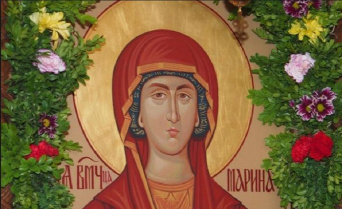 Света великомъченица Марина била дъщеря на езически жрец в Антиохия през III век. Възпитана от баща си в идолопоклонство, Господ Бог й дал да узнае истината и я призовал при себе си.