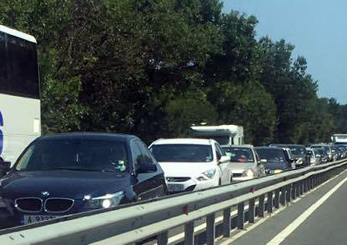 Пътят от Черноморец за Бургас е изключително натоварен. И двете ленти за движение в момента са затворени, задръстването е огромно.