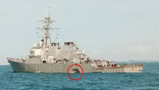 Ракетният разрушител (ескадрен миноносец) „Джон С. Маккейн“ се е сблъскал с танкера „Алник Ем Си“ (Alnic MC) на път за рутинна визита в пристанището на Сингапур. Инцидентът е станал в 05:24 ч. местно време (23:24 ч. наше време в неделя) на 10 – 20 км от източния бряг на полуостров Пенгеранг, щата Джохор, Малайзия.