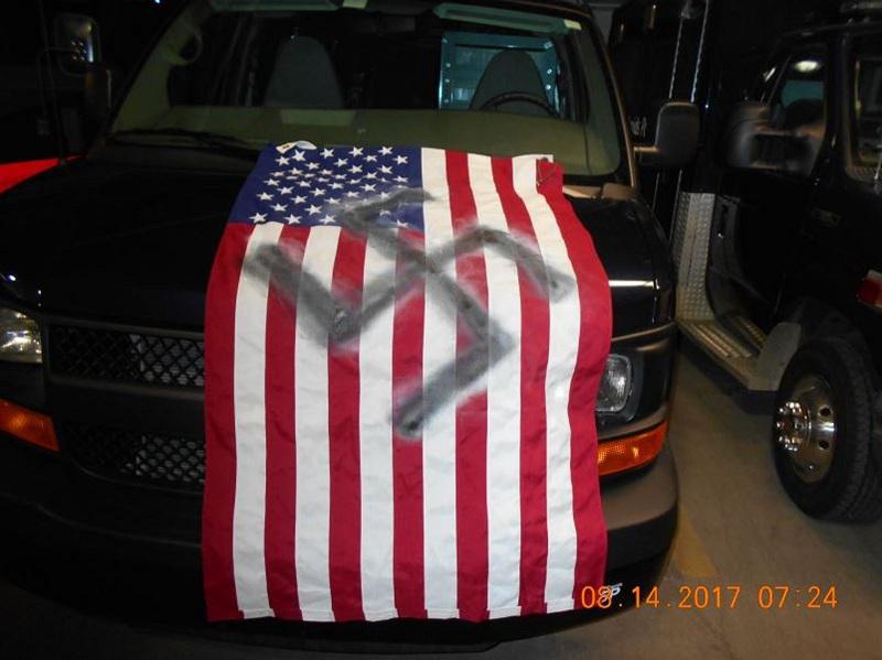 Кметът на градчето наредил на полицията да отстрани активиста от Монреал Кори Фишър, който се опитал да покрие свастиките с графити, с аргумента, че котвата има историческа стойност за града.