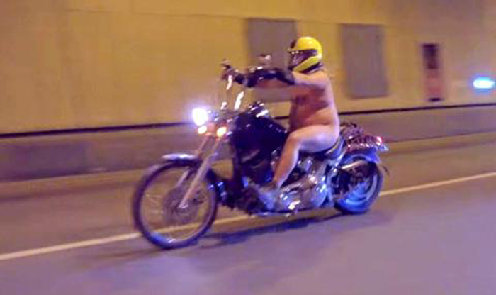 Някои от групата мотоциклетисти, сред които и дами, прикриват най-интимните си зони, а други протестират както майка ги е родила. Всички обаче носят шлемове и спазват правилата за движение.
