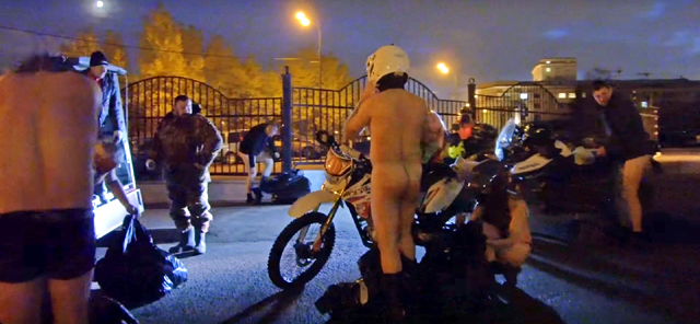 Мотористи от московски рокерски клуб отпразнуваха края на сезона с голо шествие по улиците на руската столица. Членовете на Dubasers организират подобен пробег всяка година, но този октомври акцията има и протестен характер срещу пагубното въздействие на Хелоуин, съобщава "За Рульом".