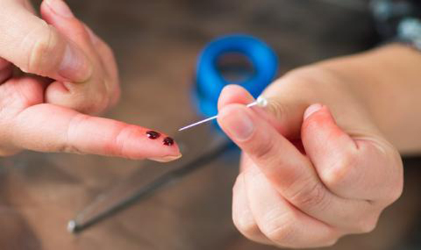 Не е задължително да знаете къде точно да прободете пръстите, само трябва да гледате да бъде на няколко милиметра разстояние от ноктите. Убодете така пръстите, че изтеклата капка кръв от всеки пръст да бъде с размер на малко грахово зърно. В случай, че не потече кръв, стиснете пръста, за да стимулирате кръвопотока или направете нова дупка.