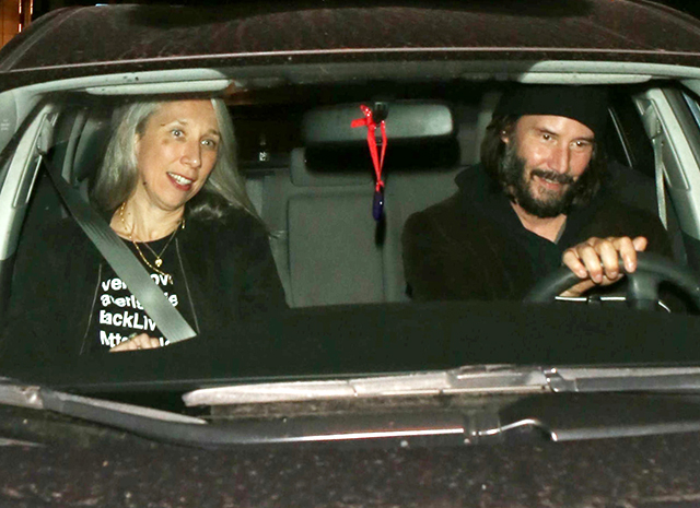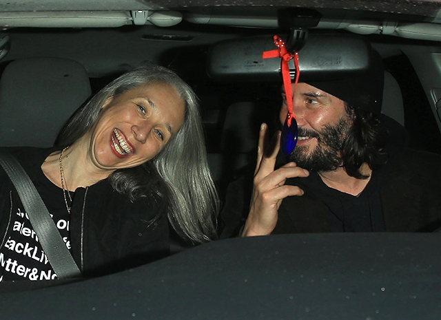 Обикновено, дори и в снимки от социални събития Киану изглежда тъжно. Но на снимките тази вечер, усмивката не напусна лицето на актьора, двойката се смя дълго в колата и разговаря за нещо.