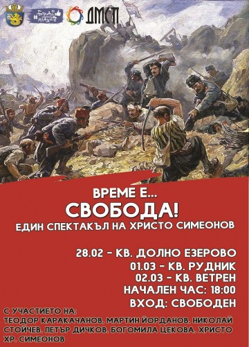 Поради лоши метеорологични условия спектакълът "Време е... СВОБОДА!" на режисьора Христо Симеонов, посветен на Националния празник на България - 3 март, се отлага за следните дати: