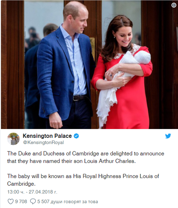 Принц Уилям и Кейт съобщиха името на новородения принц