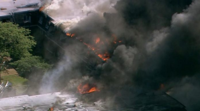 Началникът на полицията Дрю Смит каза, че огънят пламнал в 13.30 ч. местно време в сряда. Над 150 пожарникари от 50 участъка пристигнали на място. Пламъците продължили да горят и през нощта. Кадри от мястото разкриват, че пожарът е тръгнал от балкон на краен апартамент на един от блоковете. Огнеборците бързо потушили първите пламъци, но огънят бил достигнал до покрива и се разпространявал в различни посоки. Бързо обхванал две съседни сгради. Спрели го чак четири блока по-надолу, пише Български новини.