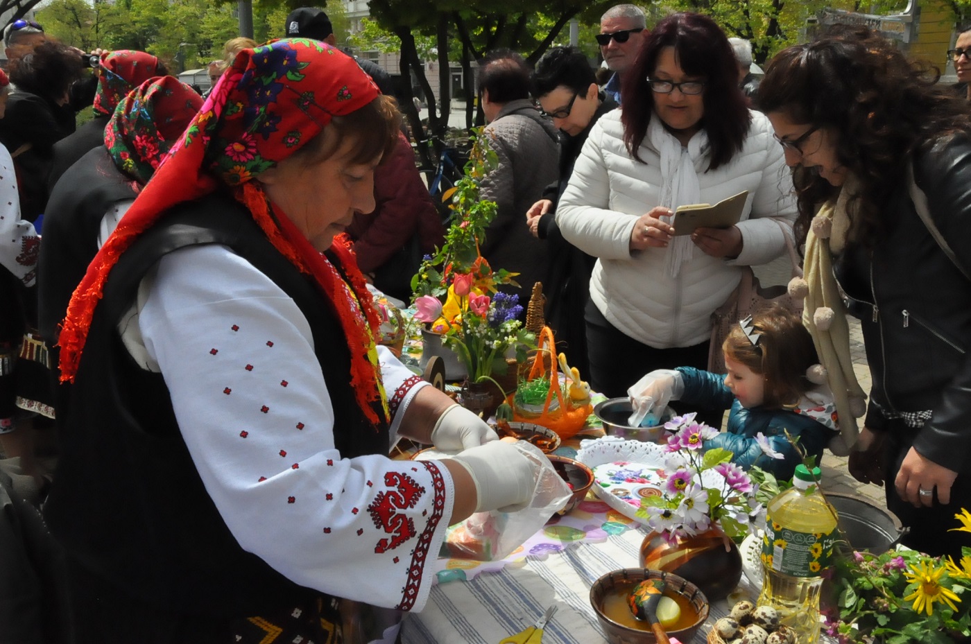 Бабите от средецкото село Факия показаха на децата и родителите им как едно време са се боядисвали яйцата. Традицията от миналото "оживя" пред очите на съвременните бургазлии днес, на Велики четвъртък, в обновената наскоро градинка до Часовника.