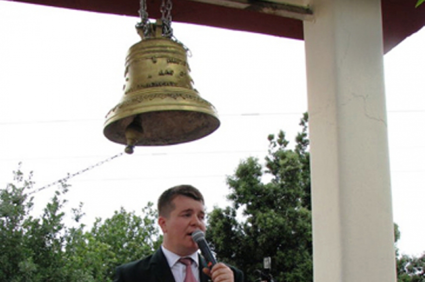 Преди да бъде дарена 8О-килограмовата камбана, бе осветена тържествено в столичния катедрален храм „Света Неделя“.