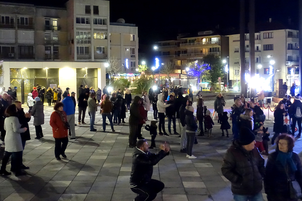 Пред множеството, дошло да отбележи сезона на зимните празници в общината, след емоционално отброяване от 10 до 1, в което участваха публика и изпълнители, грейна богата коледна украса, а блясъкът на елхата предизвика вик на искрена възхита и вълнение.