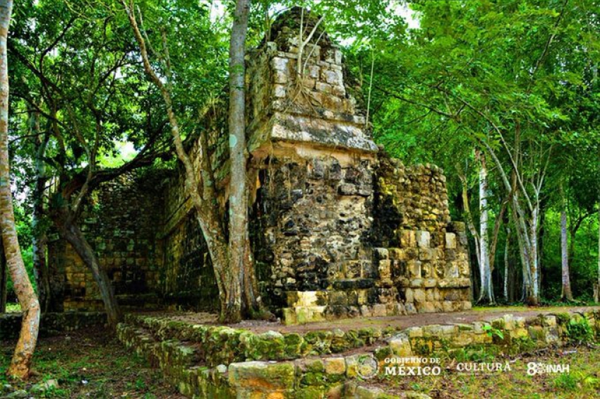 Вековната структура с дължина 55 метра, ширина 15 метра и височина 6 метра със стълби, декоративни колони и мазе се намира близо до историческия град Кулуба, съобщи Националният институт по антропология и история на Мексико (INAH).