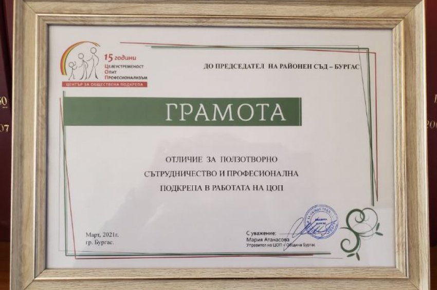 В родилното отделение на УМБАЛ Бургас връчват грамоти