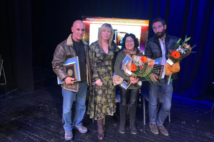 Слави Томов, Марин Маринов, Елка и Матей Ебори с Литературните награди на Бургас за 2021 година