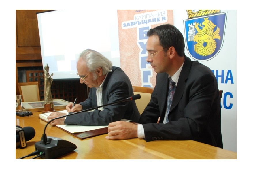 Кметът Димитър Николов поднася своите съболезнования на семейството, роднините и приятелите на видния писател, общественик и бургазлия – акад. Антон Дончев: