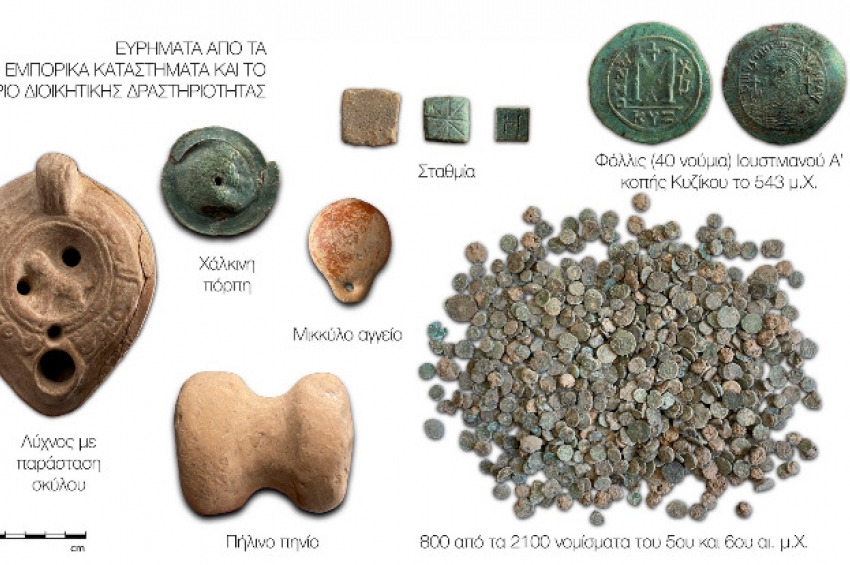На друг обект на това място археолозите откриха колекция от оброчни фигурки, както и скривалище от 2100 монети, повечето от които са сечени през 5-6 век сл. Хр. Сред тях имаше монети с изображения на Теодосий I Велики, Флавий Маркиан, Лъв I Macella, Зенон, Анастасий I, Юстин I и Юстиниан I. Освен това има и една медна монета от 4 век сл. Хр.