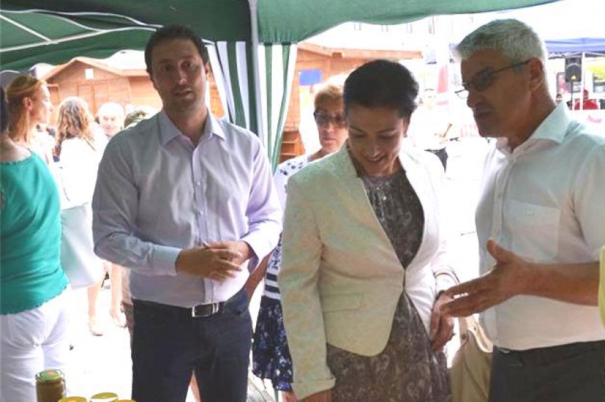 Кметът на община Царево Марин Киров подари на гостите на общината буркан от тъмният елексир, като им разказа за ползата и качествата му.