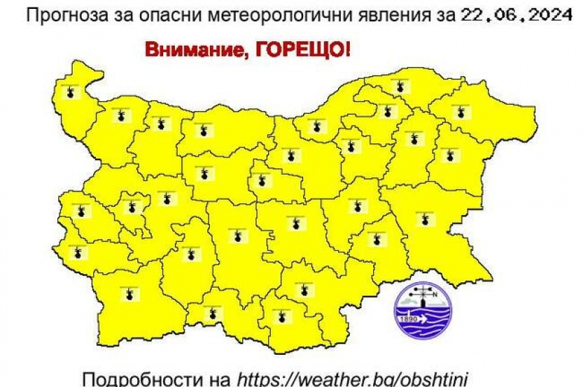 Жълт код за горещо време в събота за цялата страна