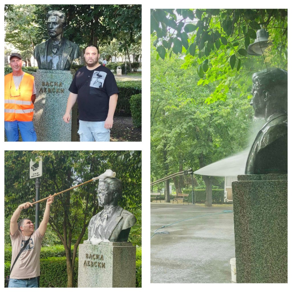 Братята журналисти Кеворк и Степан Дадурян почистиха паметника на Васил Левски в морската градина на Бургас.