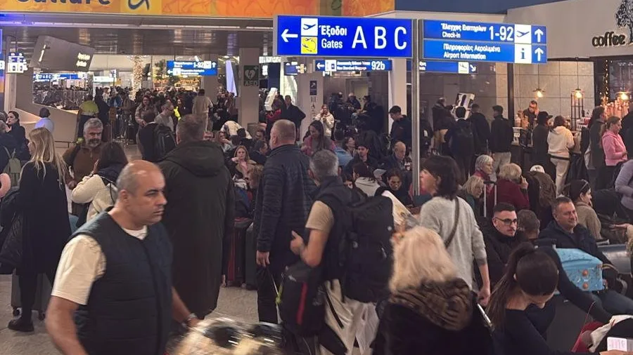 Първите снимки от залите за заминаващи на гръцките летища показват хаоса: заседнали пътници чакат с багажа си за чекиране – но това е напълно спряно.
