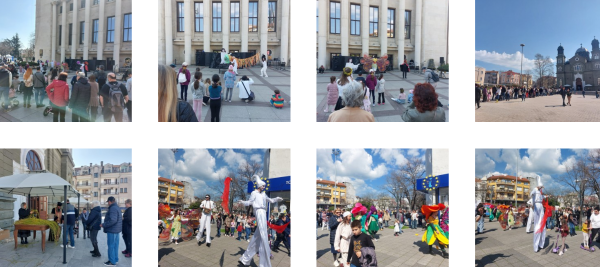 Театър „Жар“ представи на площад „Атанас Сиреков“ спектакълът „Завръщането на цветята“. Веднага след това актьорите и техните колеги от Бургаския куклен театър тръгнаха на цветно шествие по ул. „Богориди“.