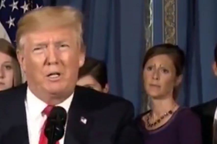Жена със странна форма на веждите затъмни речта на Доналд Тръмп свързана със здравеопазването. Дамата, застанала зад лявото рамо на пре...