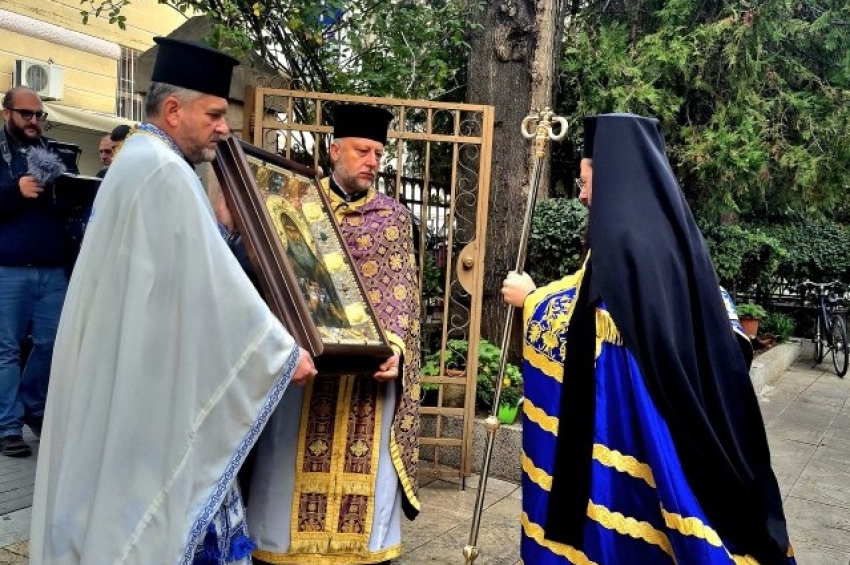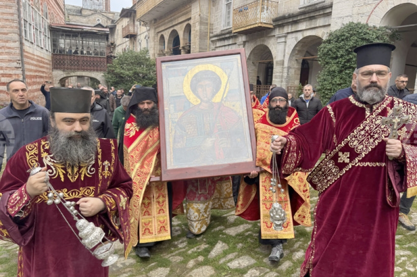 След всенощно бдение и света литургия рано вчера сутрин с литийно шествие с чудотворна икона на свети Георги българският манастир “Свети Великомъче...