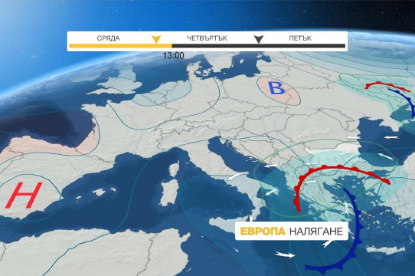 Ще бъде слънчево. Временни увеличения на облачността ще има над Източна България и на отделни места там ще превали. Ще духа слаб до умерен североза...