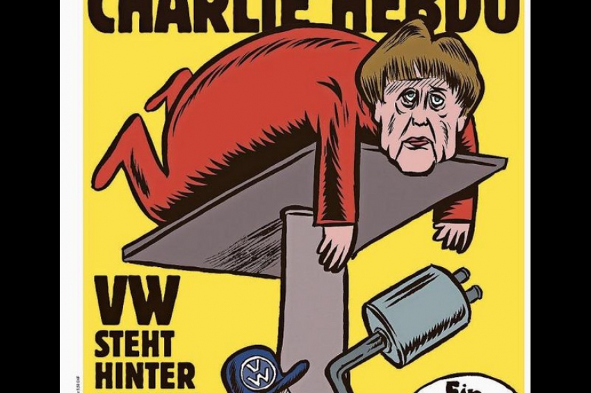 Френското сатирично списание Charlie Hebdo постави карикатура с Ангела Меркел начело на първото си немскоезично издание. "VW стои зад Меркел", п...