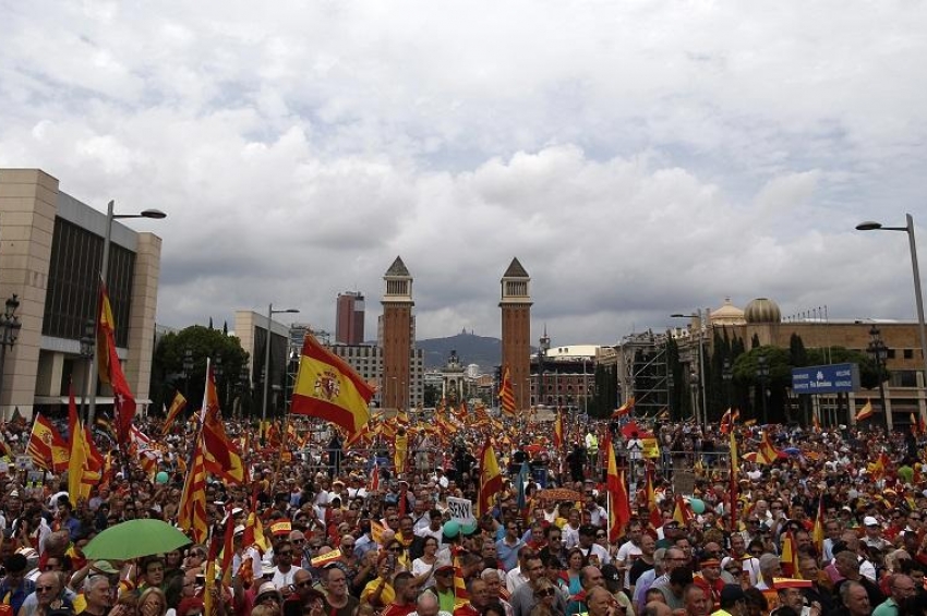 Няколко хиляди испанци излязоха на демонстрации в Барселона в подкрепа на националното единство и срещу сепаратисткото движение в североизточната п...