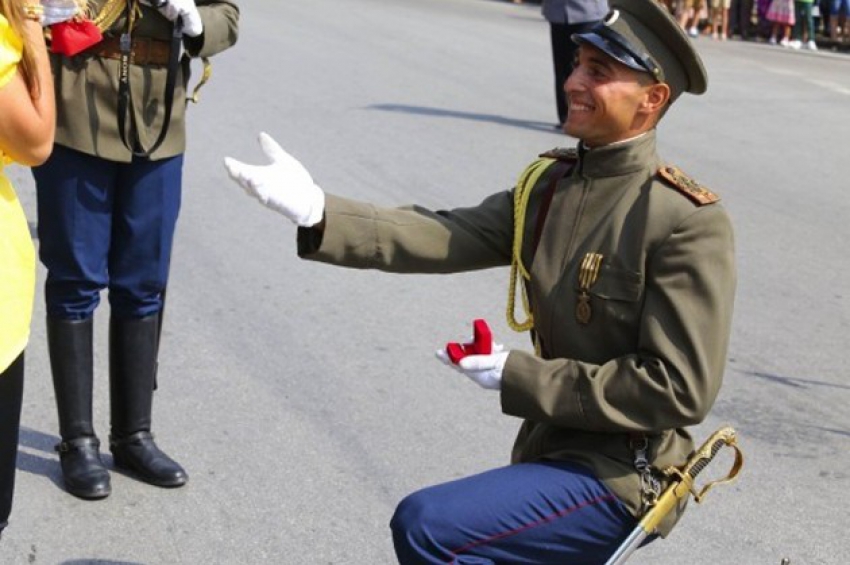 Млад офицер предложи брак на своята приятелка на площада във Велико Търново. Това стана веднага след церемония за Деня на независимостта, която изп...