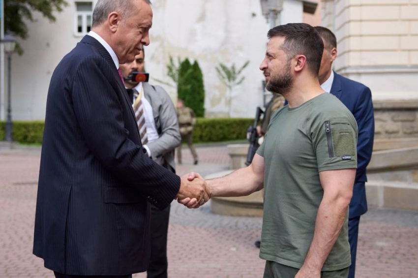 Тристранната среща между президентите на Украйна и Турция Володимир Зеленски и Реджеп Тайип Ердоган и генералния секретар на ООН Антониу Гутериш за...