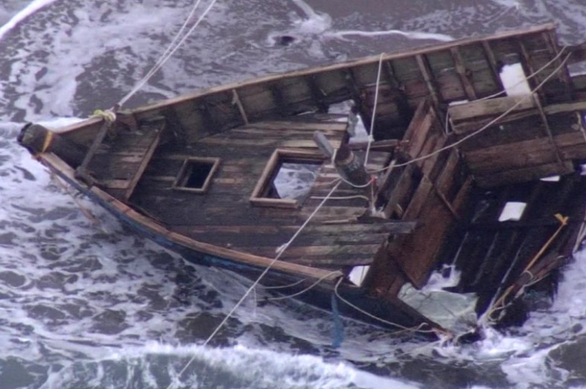 Пет човешки тела и две глави бяха открити в лодка, прикована до бреговете на Япония. Лодката, открита на остров Садо, е силно повредена, с корей...