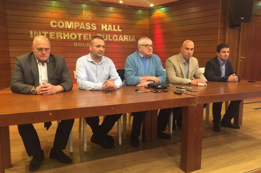 На пресконференцията бе представен новият общински лидер на БСП-Бургас Живко Господинов (вдясно) Четиримата червени народни представители от Бур...