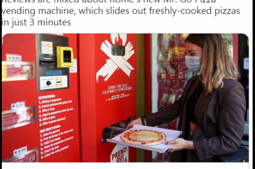 Пицарията Пица Mr. Go е инсталирала автомат за пици в центъра на Рим. Машината приготвя ястието само за три минути. Преди това клиентът трябва д...