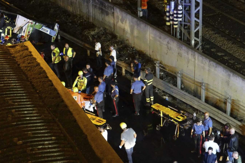 Автобусът, превозвал туристи, е паднал от десет метра височина върху електрически проводници в близост до железопътна гара в град Местре, в близост...