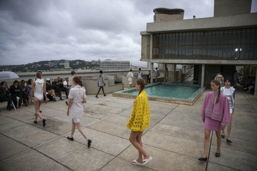 Парижката модна къща "Шанел" качи моделите си на покрива на емблематичния жилищен блок Cité Radieuse в Марсилия, Южна Франция, за ревю, съчетаващо ...