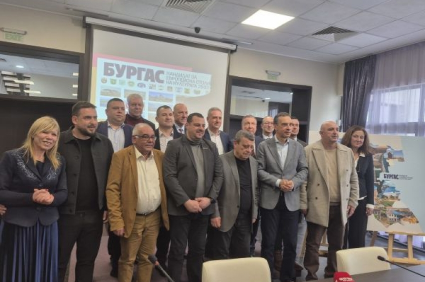 С подреждане на пъзел, изобразяващ Бургаска област, кметовете на 13-те общини в региона демонстрираха обединението си около кандидатурата на Бургас...