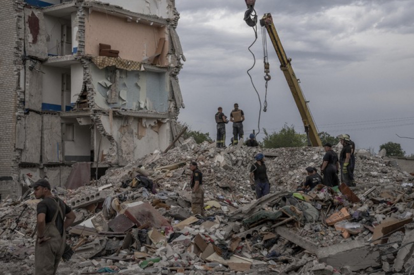 Десетки служители от украинските спасителни служби се опитваха вчера да извадят хора изпод отломките, след като руска ракетна атака порази жилищни ...