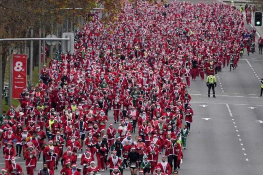Хиляди хора, облечени като Дядо Коледа, участваха в благотворителна акция в Мадрид за събиране на средства за жертвите на вулкана на испанския остр...