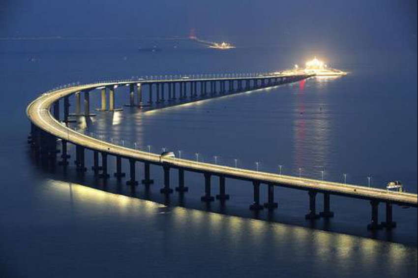Най-дългият морски мост в света е гигантски 55-километров надлез, който свързва провинция Гуандун на континента, по-точно град Джухай, с двата адм...