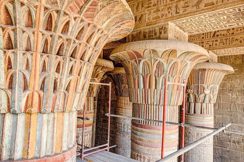 В продължение на две хилядолетия сажди и кал покриваха стенописите в храма Хнум в египетския град Есна, докато усърдните реставрационни работи на а...