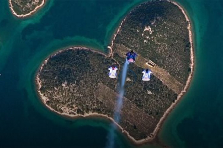 Трио парашутисти отпразнува Деня на Свети Валентин със скок на остров с формата на сърце в Хърватия. Източник: евронюз