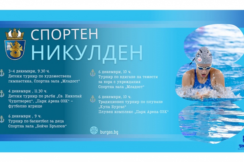 На 6-и декември градът празнува в ритъма на Никулден със спортни, официални, културни и музикални събития на емблематични места в Бургас. ПРОГР...