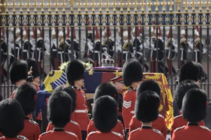 Ковчегът с тленните останки на Нейно Величество беше пренесен от оръжейна карета на Кралския отряд на конната артилерия. Крал Чарлз III и другите т...